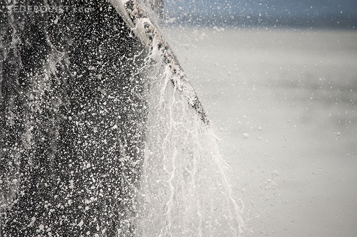 Humpbacks can be notoriously difficult to photograph, as they are underwater most of the time and it’s difficult to predict where and when they’ll surface. Fast shutter speeds and advance positioning help. Often a whale will breach again and again in the same place. More typically they will roll on the surface several times before sounding for ten to fifteen minutes.